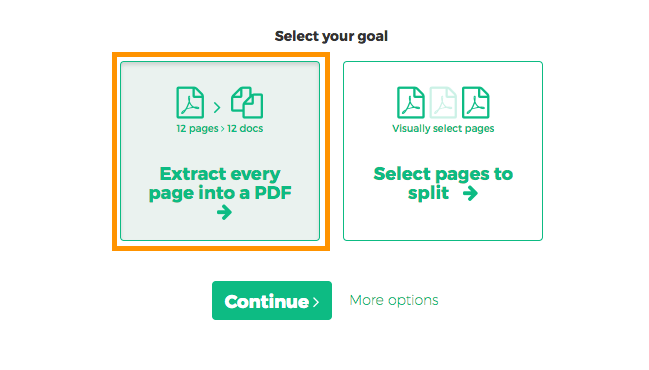 Want to split every PDF page to a separate document? Select 'Extract every page into a PDF'.